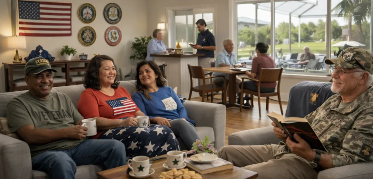Comfortable Living: A quiet, respectful home setting where veterans can live independently while feeling safe, valued, and supported.